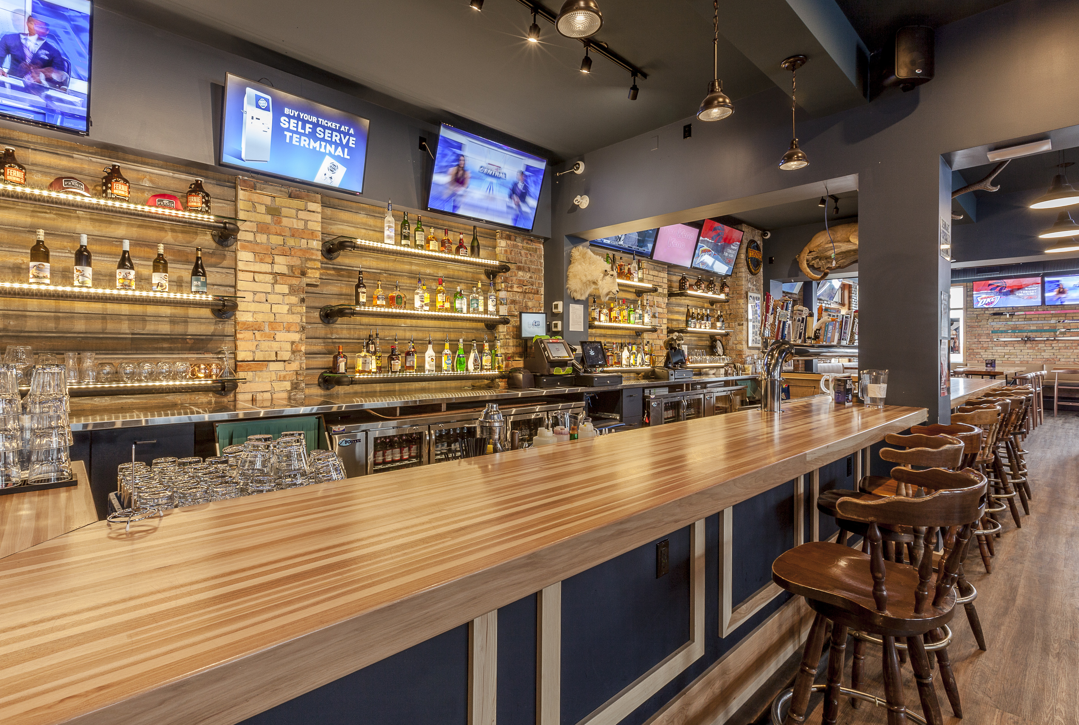 Take a look at our before and after renovation completed December 2019! Stunning new bar, floors, tables, lighting, air system, T.V.’s, really the whole sha-bang!